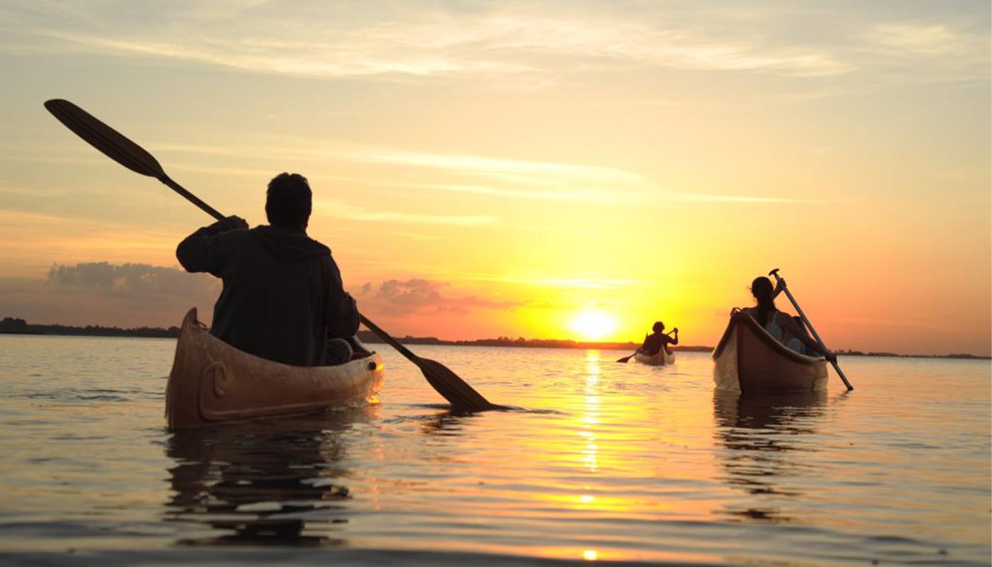 El atardecer sobre la laguna rodeada de árboles en Chascomús es tan impactante como sus edificios históricos. La Capilla de los Negros, el palacio municipal y la Vieja Estación son escenarios de historias, gastronomía, deportes náuticos y encuentros inolvidables.